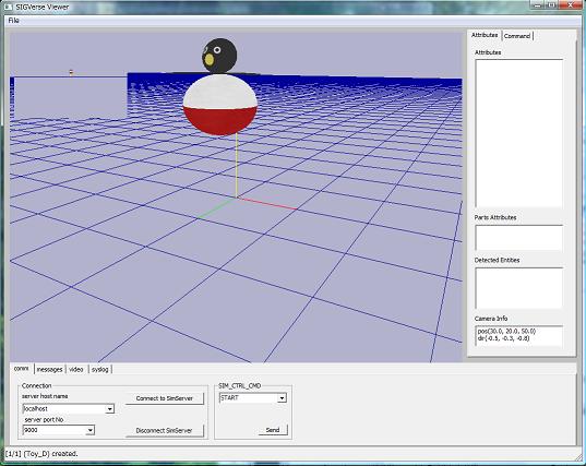 次にSIGViewerを起動してホスト名とポート番号を入力し、Connect to SimServerボタンをクリックしてサーバに接続します。