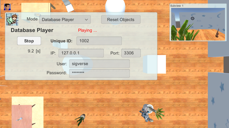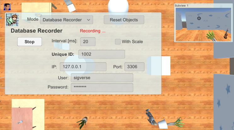 In this scene, you can record and play back the movement of characters and some objects to MySQL.