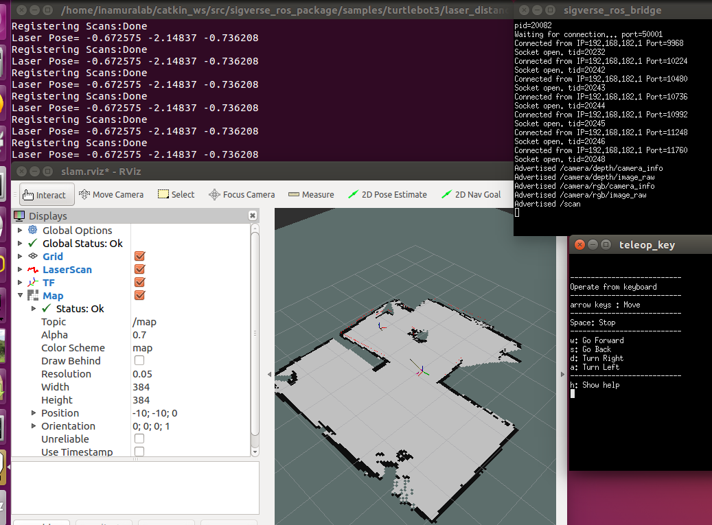 $ roslaunch sigverse_turtlebot3_laser_distance_sensor slam.launch
