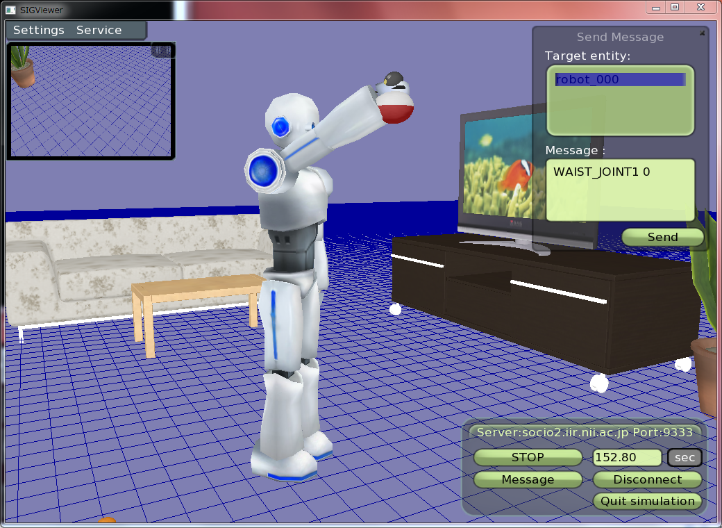 A message "[joint name] [angle]", the specified [joint] will be bent to the [angle] ex) "WAIST_JOINT1 45" The definition of each joint is explained at JointDefinition