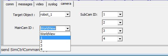 メインビューを"Robot_1"のカメラ1の画像に切り替えました。 WorldViewに戻すと元の画面に戻ります。