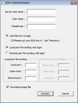 ここではビューワーからサーバへSSH接続する方法を説明します。 SSH接続することにより、形状ファイルのダウンロードの自動化やSSHポートフォワーディングの設定を行うことができるようになります。