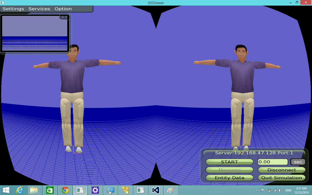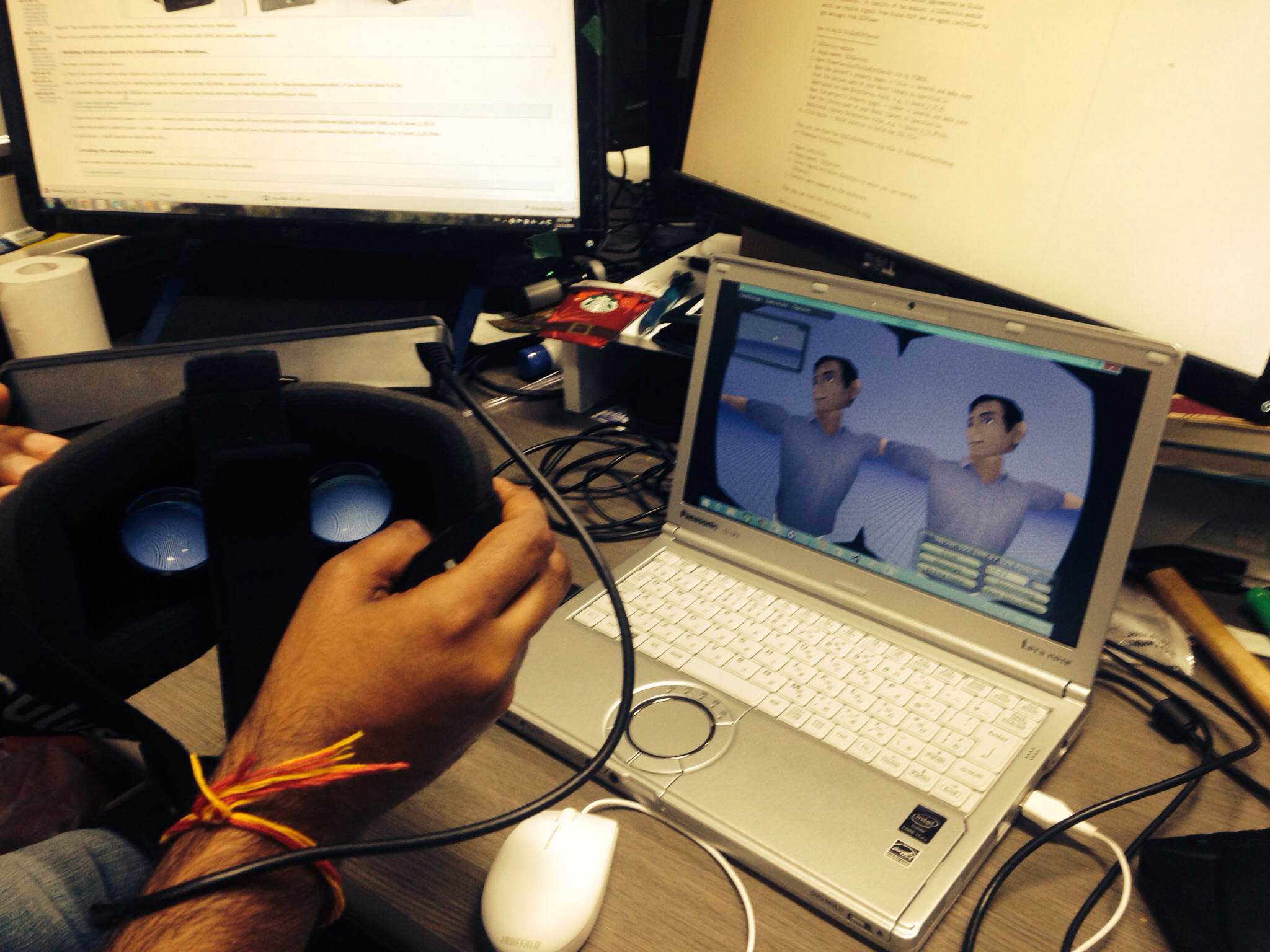 The aim of this tutorial is to show how virtual reality can be integrated using SIGVerse via Oculus Rift Sensor, virtual reality head-mounted display.