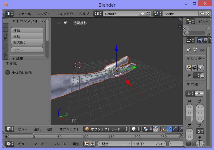 読み込んだオブジェクト上で右クリックして, 画面右側にある