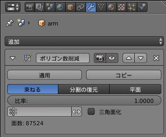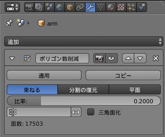 比率: 1.0000 となっているところをクリックすると数値を入力できるので,削減後のポリゴン数の比率を入力します.