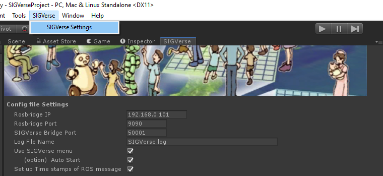 Unityのサンプルシーンを実行する前に、ROSのIPアドレスをUnity側に設定する必要があります。