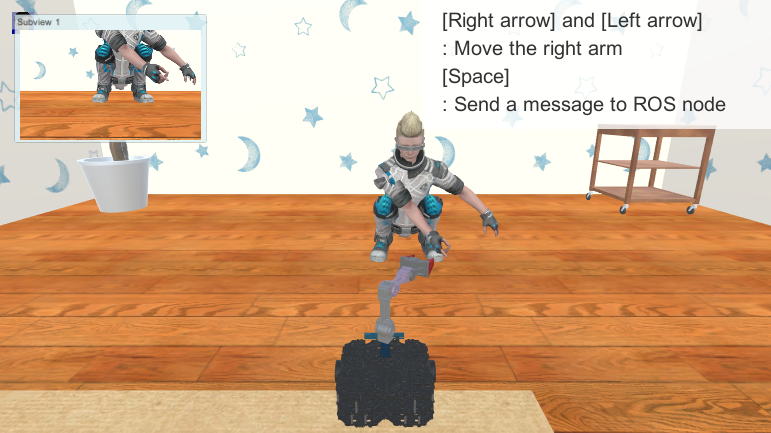 Unity側で左右の矢印キーを押下すると、人間キャラクターの右手が動きます。