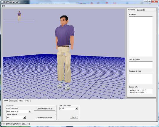 SIGViewerで見てみると手を広げたエージェントが見えると思います。 sendボタンをクリックしてシミュレーションを開始すると、onActionが呼び出されて右手と左手を下に下げます。