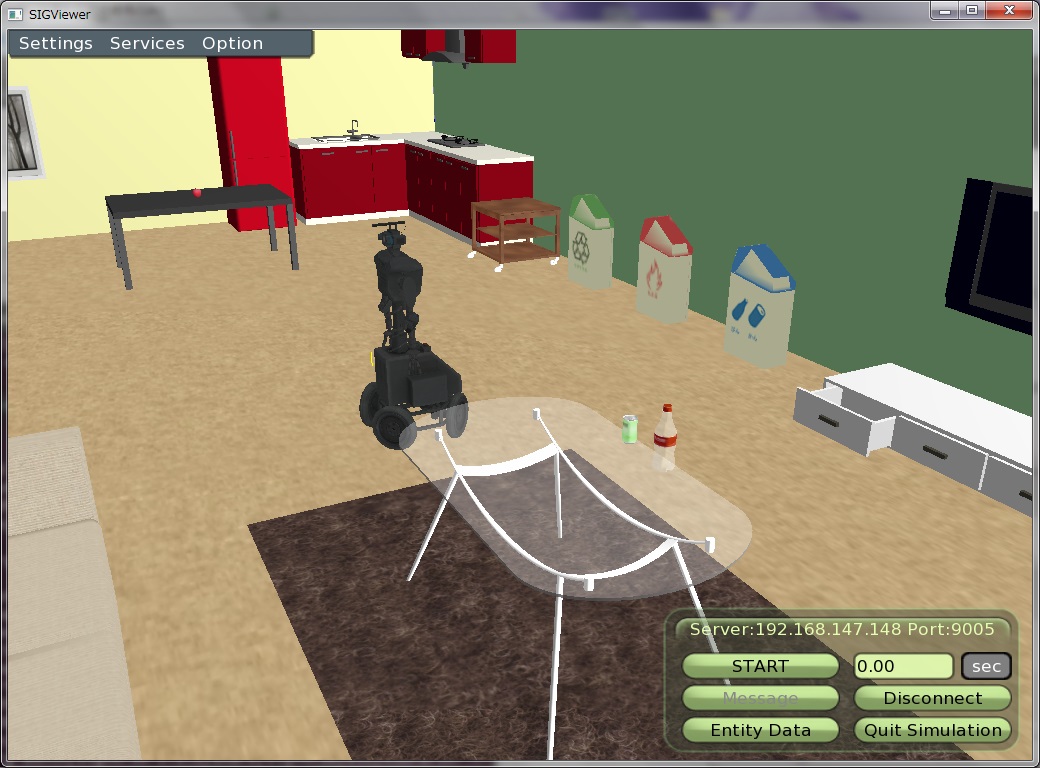 終了するときはゴミ認識サービスプロバイダの終了→ビューワーでシミュレーション終了(もしくはQuit)→ビューワーでdisconnect→サーバの終了の順に行います。