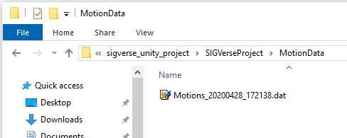 - MotionDataフォルダの下に、Motions_yyyyMMdd_HHmmss.dat 形式のデータファイルを確認できます。