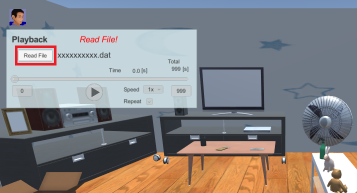 - 再生パネルのRead Fileボタンを押下してから、記録したデータファイルを選択します。